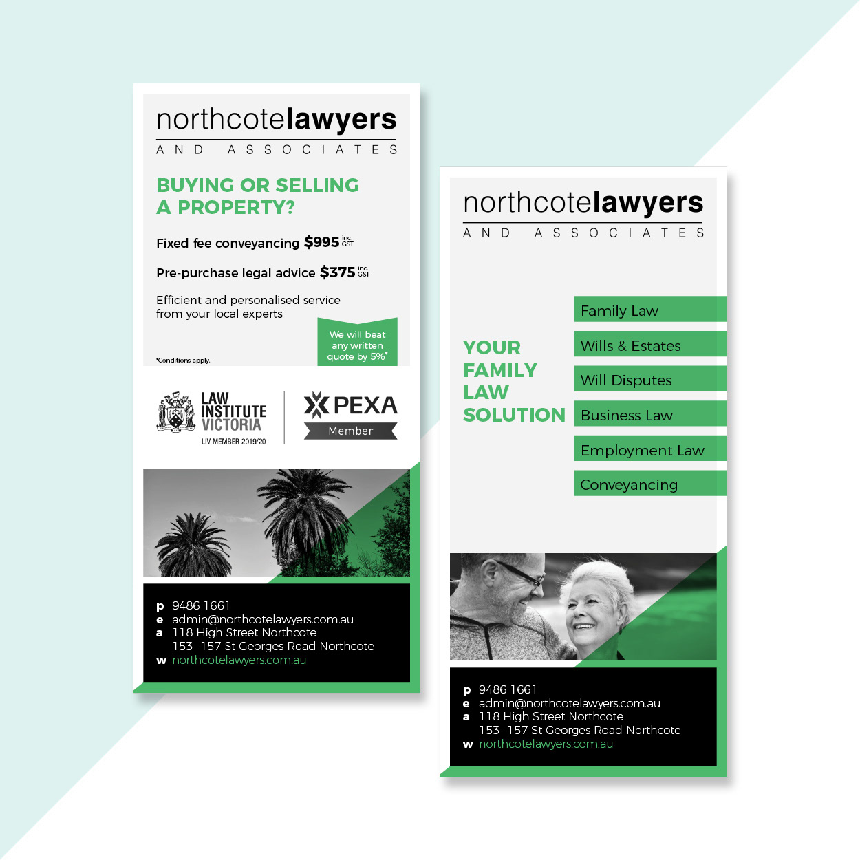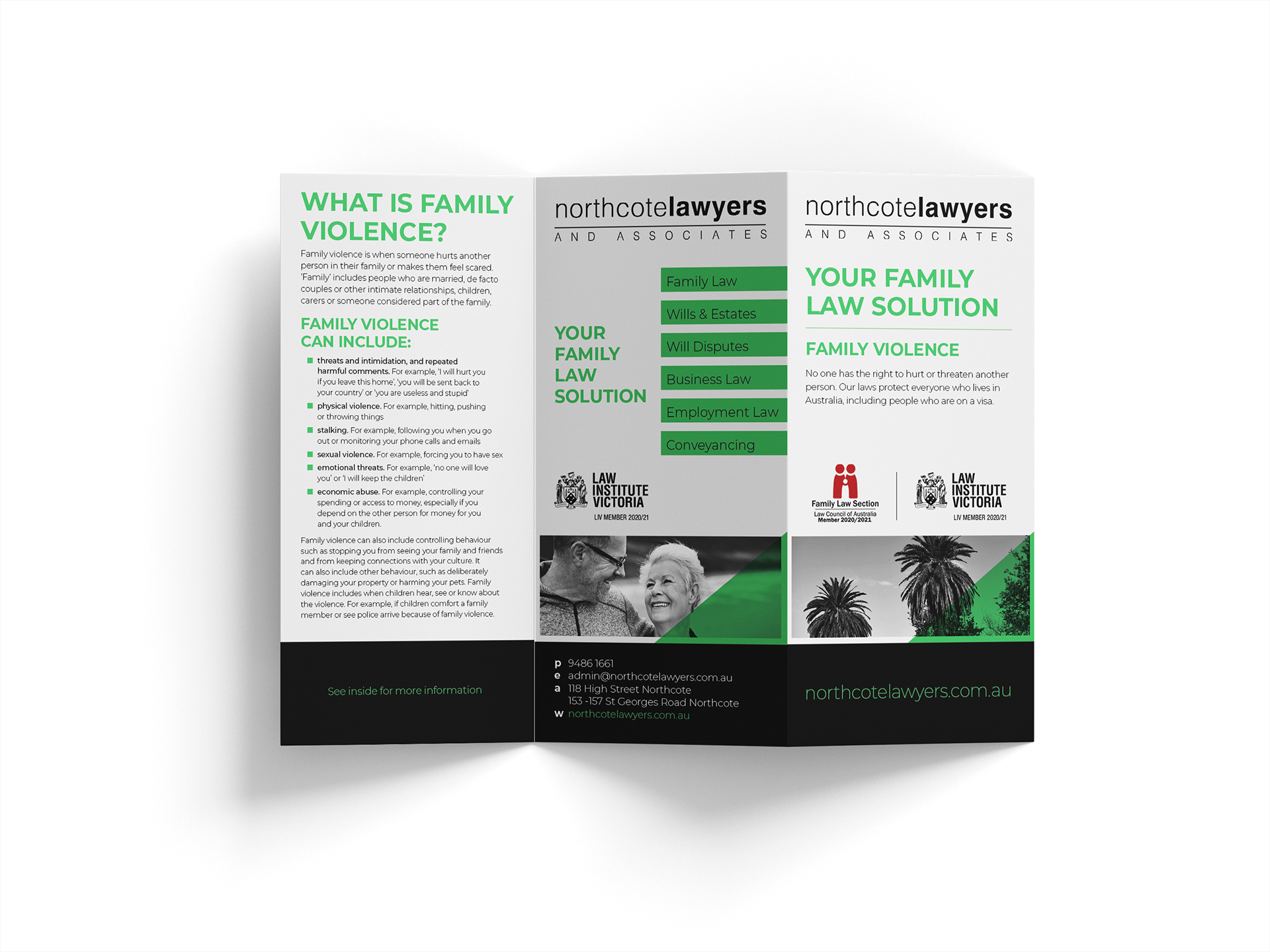 Flyer & brochure designed for Northcote Lawyers.
